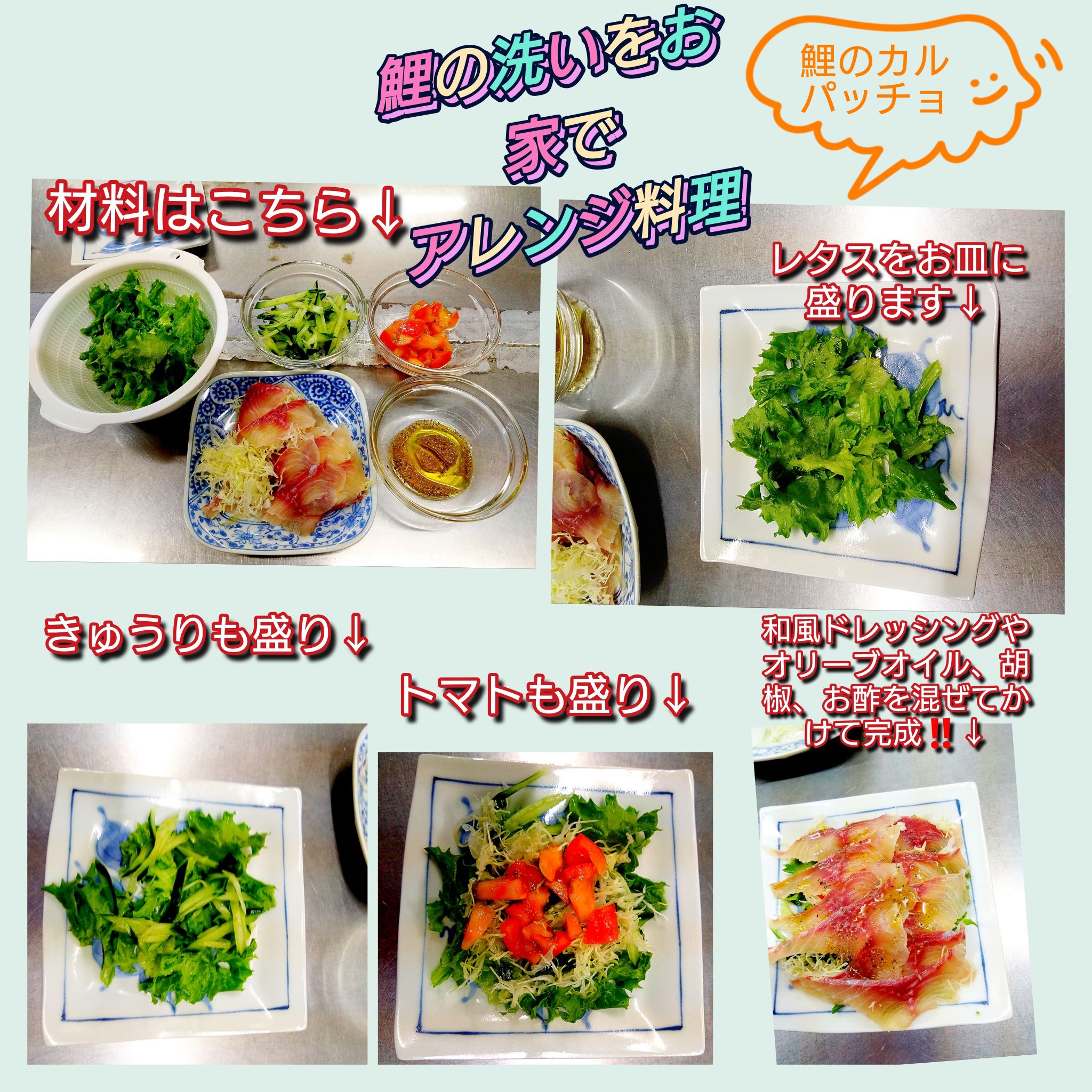 レタス、きゅうり、トマト(あるもので大丈夫鯉の洗いに敷いてあるキャベツも活用して下さい